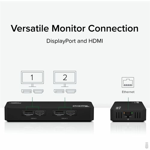Plugable 4K DisplayPort and HDMI Dual Monitor Adapter with Ethernet for USB 3.0 and USB-C
