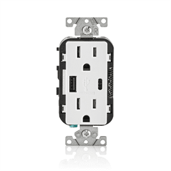 Leviton Receptacle Type A and C USB Charging,125V/15A, Tamper Resistant, White (T5633-W)