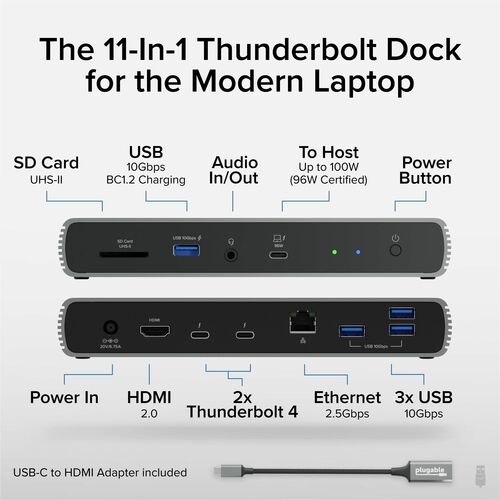 Plugable Thunderbolt 4 Dock with 100W Charging, Th