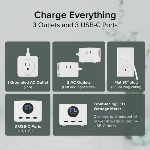Plugable 67W USB C Power Strip, USBC Charging Stat