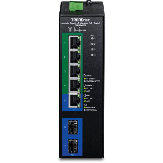 TRENDNet 7-Port Industrial Gigabit L2 Managed PoE+ DIN-Rail Switch 24 - 57V (TI-PG743BI)