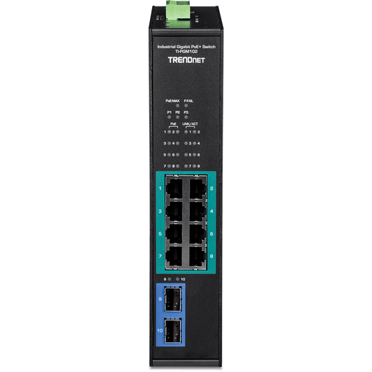 TRENDnet 10 Port Hardened Industrial Gigabit PoE+ DIN Rail Switch (TI-PG102)