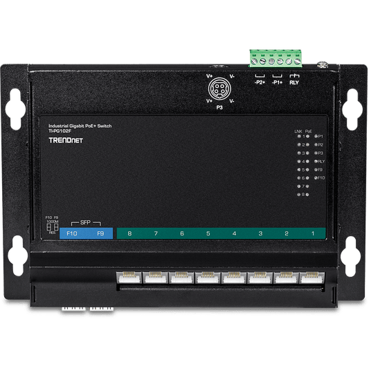 TRENDnet 10-Port Industrial Gigabit PoE+ Wall-Mount Front Access Switch (TI-PG102F)