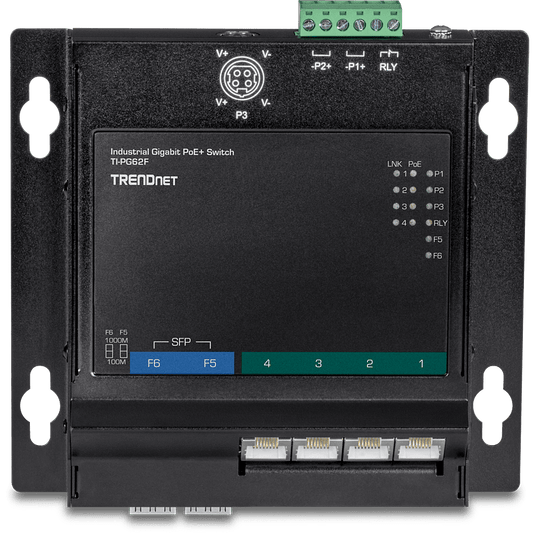 TRENDnet 6-Port Industrial Gigabit PoE+ Wall-Mounted Front Access Switch (TI-PG62F)