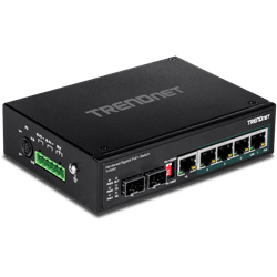 TRENDnet 6 Port hardened Industrial Gigabit PoE+ Switch,5 Gig, 1 sh/1 ded SFP (TI-PG62)