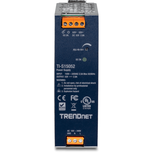 TRENDnet 150W, 52V DC, 2.89A AC to DC DIN-Rail Power Supply with PFC Function (TI-S15052)