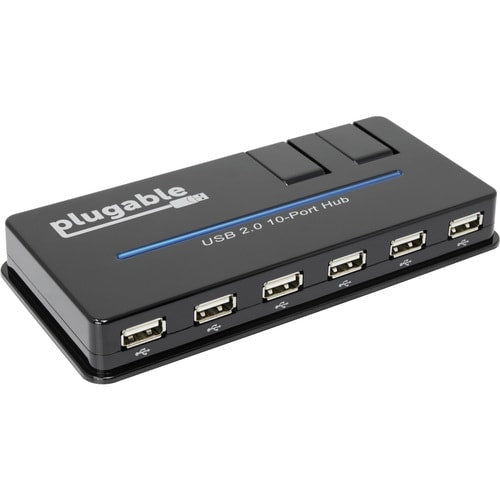 Plugable USB Hub, 10 Port - USB 2.0 with 20W Power Adapter and Two Flip-Up Ports
