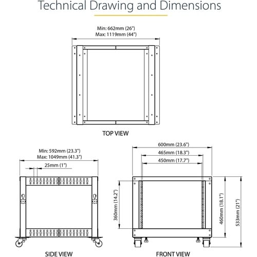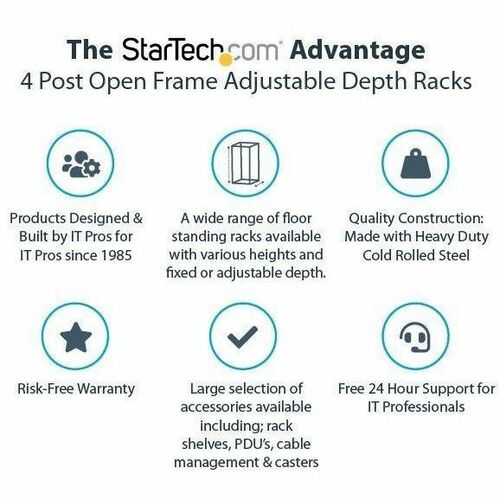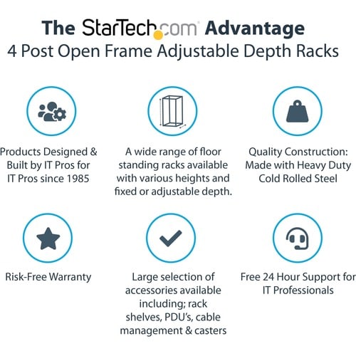 StarTech.com Rack de servidor móvil de marco abierto de 4 postes y 25U, 19 pulgadas, para redes