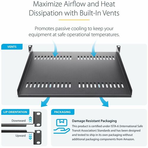 Estante para rack de servidores ventilado 2U de StarTech.com - Montaje central fijo de 20" de profundidad