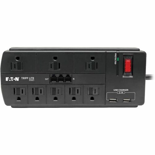 Protector contra sobretensiones Tripp Lite de 8 tomacorrientes y 2 puertos de carga USB para teléfono/módem de 8 pies