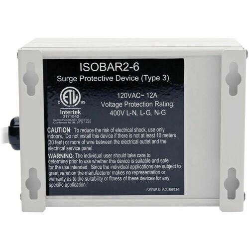 Supresor de sobretensiones ISOBAR2-6 de Tripp Lite by Eaton - NEMA 5-15P - 2 x NEMA