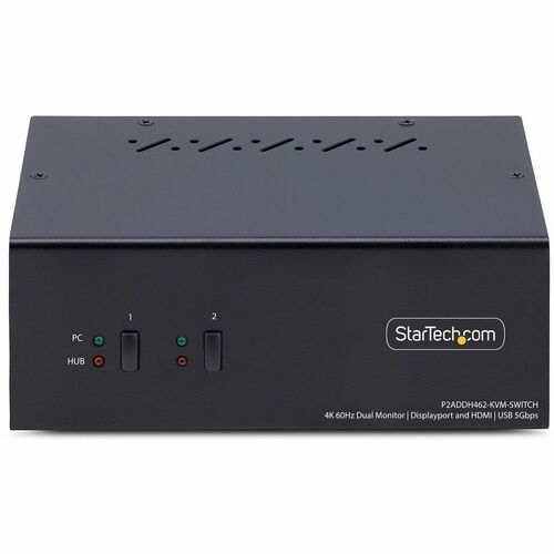 Conmutador KVM de dos puertos con pantalla dual y audio PP4.0 TAA