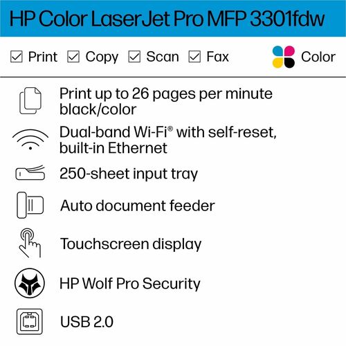 | Product Name | Color LaserJet Pro MFP 3301fdw Wireless Printer |