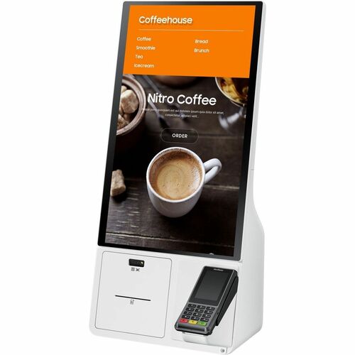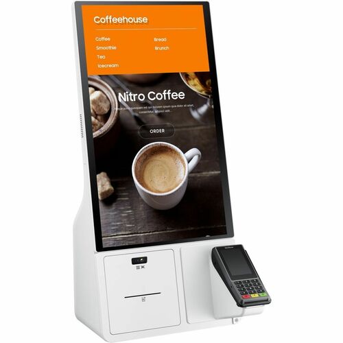 The Samsung Kiosk adopts a modular design which provides a variety of payment options including credit card, barcode, QR code and NFC, along with a built-in printer. This means it needs no additional peripherals for an advanced, all-in-one solution that also makes maintenance fast and easy.
