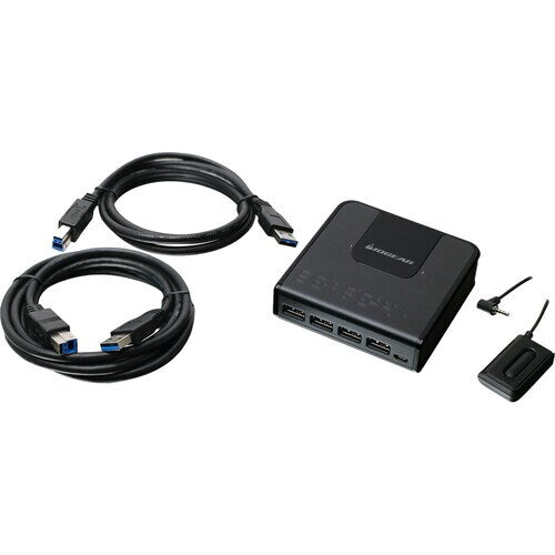 IOGEAR's 2x4 USB 3.0 Peripheral Sharing Switch provides a convenient means to share four USB devices between two different computers. A simple press of the button changes the connection of four USB devices such as keyboard, mouse, printer, portable hard drives, etc. from one computer to another.
