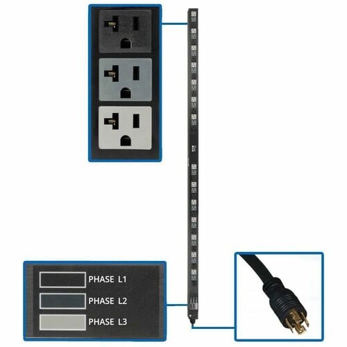 This basic PDU is an ideal no-frills unit for networking, telecom, security, audio/video and sound reinforcement applications. Recommended for small to mid-sized data centers, computer rooms and network closets, the PDU3V6L2120LV features 42 NEMA 5-15/20R outlets in three single-phase output load banks for connecting equipment. A six-foot (1.8-meter) cord with NEMA L21-20P 3-phase input plug connects to your facility's AC power source, generator or protected UPS system to distribute power to connected loads.