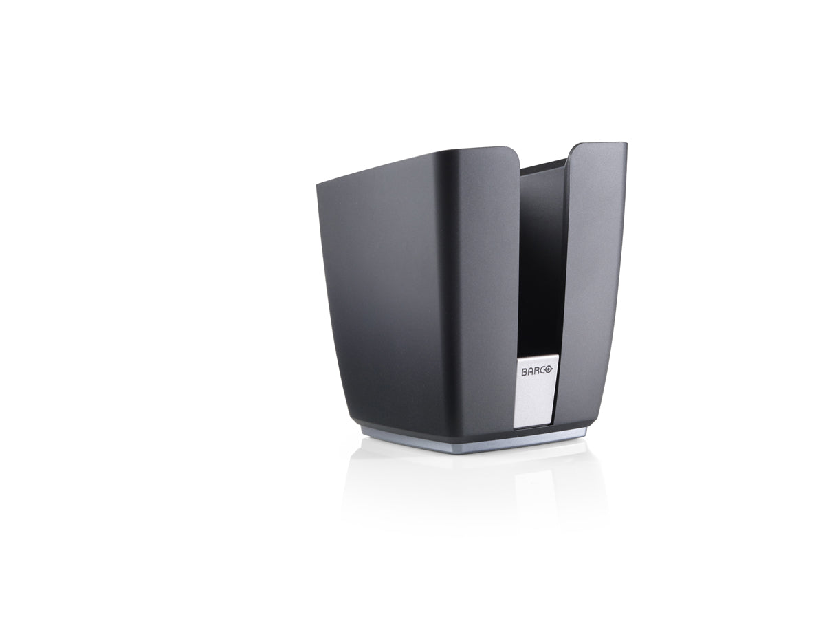 La elegante bandeja ClickShare contiene los botones cuando no se usan. Caben hasta cuatro botones en una bandeja.