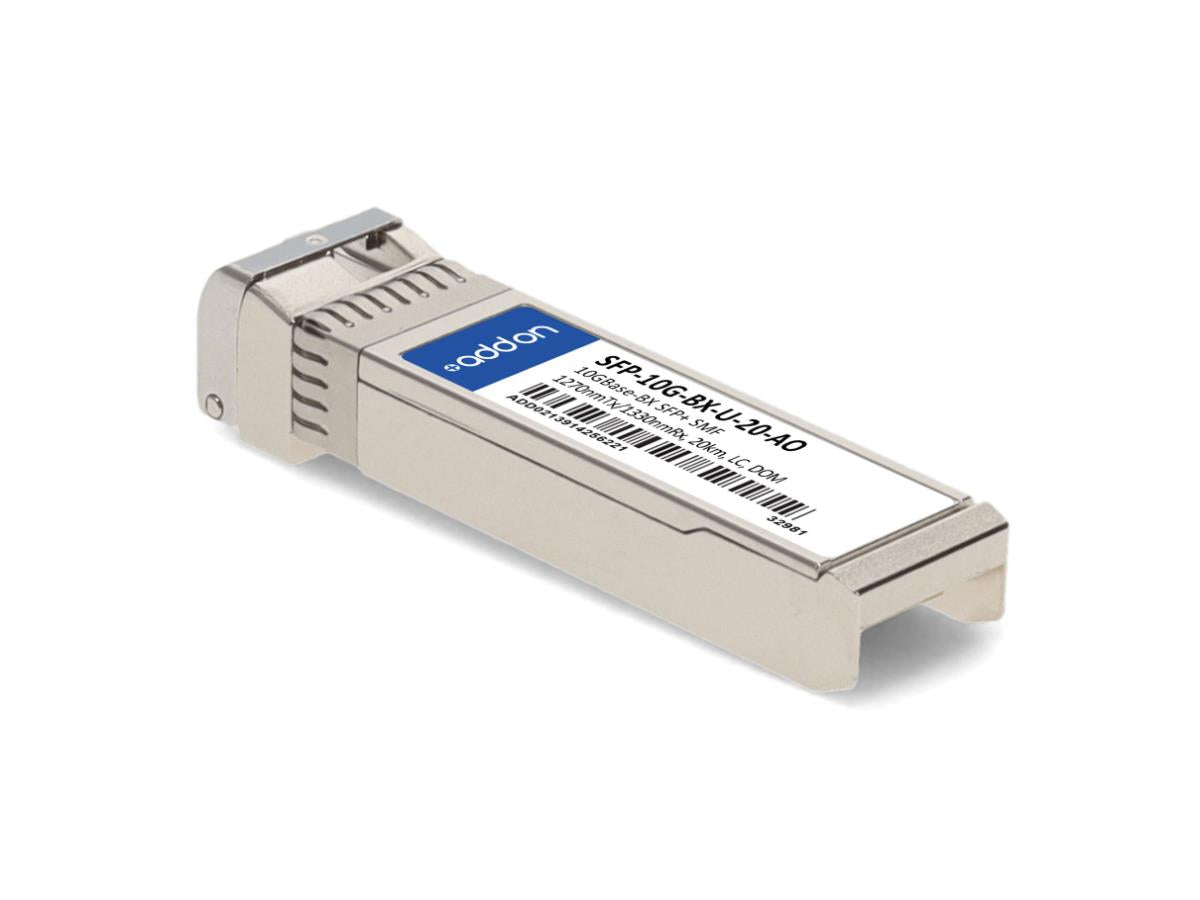 Transceptor SFP+ 10GBase-BX compatible con Cisco SFP-10G-BX-U-20 (SMF, 1270 nmTx/1330 nmRx, 20 km, LC, DOM). Transceptor SFP+ 100 % compatible con Cisco que opera a 1270 nmTx/1330 nmRx sobre fibra monomodo, con un alcance máximo de 20 km, conectado mediante un conector LC.