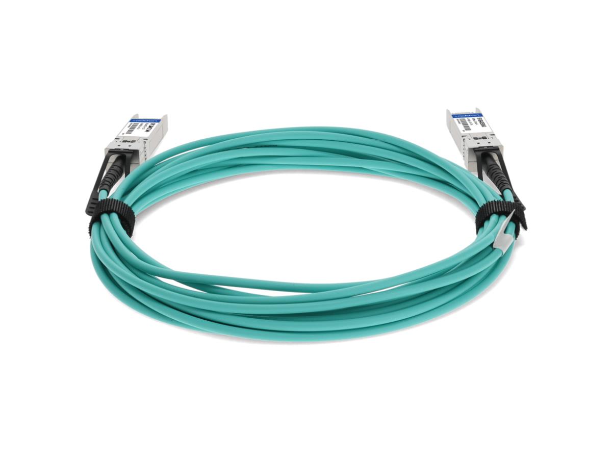 Cable de conexión directa 10GBase-AOC SFP+ a SFP+ compatible con MSA (850 nm, MMF, 0,5 m). Cable de conexión directa óptica activa 10GBase-AOC SFP+ a SFP+ compatible con MSA que opera a 850 nm sobre fibra multimodo, con un alcance máximo de 0,50 m (1,64 pies). Este cable óptico activo ha sido programado, serializado de forma única y probado en aplicaciones y tráfico de datos para garantizar su total conformidad y funcionalidad. Nuestro cable de conexión directa está diseñado para cumplir con los estándares MSA (Acuerdo Multifuente). El componente enviado puede tener un número de pieza diferente, pero será funcionalmente idéntico y 100 % compatible. Hay versiones de este componente disponibles conforme a la Ley de Acuerdos Comerciales (TAA).
