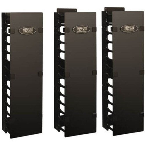 Tripp Lite's SmartRack SRCABLEVRT6 helps eliminate cable stress by organizing the cables within the SmartRack Open Rack cabinet. The vertical cable manager (finger duct with cover) is 6-ft high and split into three 2-ft sections to allow for multiple installation options. SRCABLEVRT6 offers toolless button mounting.