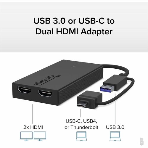 Adaptateur double écran Plugable 4K DisplayPort et HDMI avec Ethernet pour USB 3.0 et USB-C