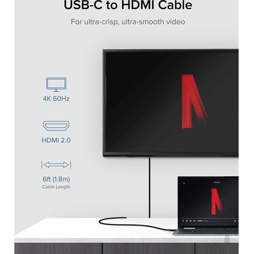 Câble USB 3.1 Type-C vers HDMI 2.0 enfichable - 1,80 m (5,9 pi) HDMI/Thunderbolt 3 A