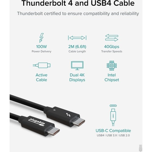 Câble de transfert de données Thunderbolt 4 enfichable - 2 m (6,6 pi) Câble de transfert de données Thunderbolt 4
