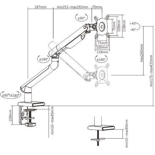 Bras de montage Amer HYDRA1A pour moniteur, écran incurvé