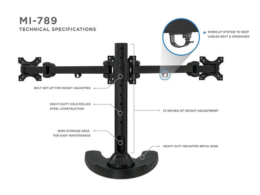 Support d'écran double autonome Nu-Tone Intekview, réglage facile