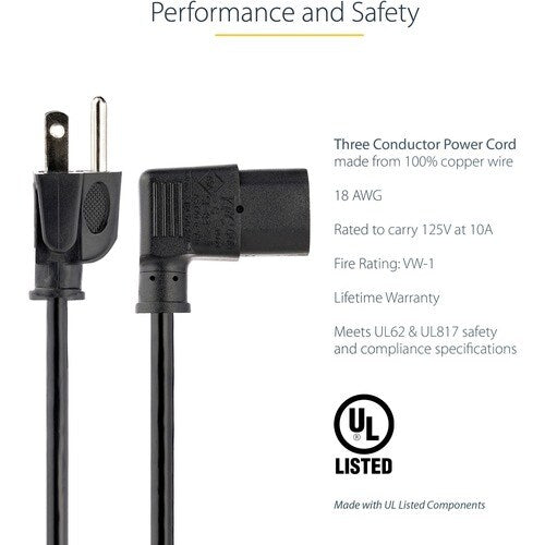 StarTech.com Cordon d'alimentation pour ordinateur 1,8 m, NEMA 5-15P vers C13, 10 A 125 V, 18 AWG, noir