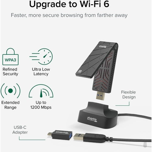 Adaptateur Wi-Fi double bande IEEE 802.11ax enfichable pour ordinateur de bureau/portable - USB
