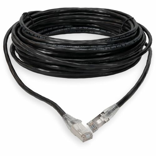 This is a 14ft RJ-45 (male) to RJ-45 (male) black Snagless shielded twisted pair PVC copper patch cable. The Cat6A cable is designed to support the high speed of EoC (Ethernet over Copper) over the full 100 meters. Cat6A cable standards provide a performance of up to 500MHz and is suitable for 100Base-TX, 1000Base-T and 10GBase-T. This PVC jacketed cable is best suited for LANs or SANs, and is recommended for connection between fiber patch panels, hubs, switches, media converters and routers. A shielded twisted pair patch cable offer both a higher bandwith and a more durable cablestrength than an unsheilded twisted pair cable. Our patch cables are 100% compliant for all of your networking needs. Our products are guaranteed by federal law to not affect or void OEM warranties.