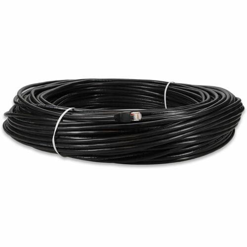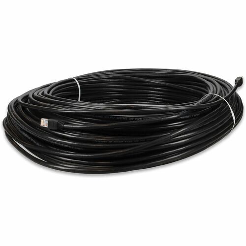 This is a 250ft RJ-45 (male) to RJ-45 (male) black straight unshielded twisted pair PVC outdoor-rated copper patch cable. The Cat6 cable is a standardized twisted pair cable for Ethernet or other physical network layers. Cat6 standards specify performance of up to 250MHz. This PVC jacketed cable is best suited for LANs or SANs, and is recommended for connection between fiber patch panels, hubs, switches, media converters and routers. Unshielded twisted pair patch cables are perfect for data centers, LANs and other short range network connections. Our patch cables are 100% compliant for all of your networking needs. Our products are guaranteed by federal law to not affect or void OEM warranties.