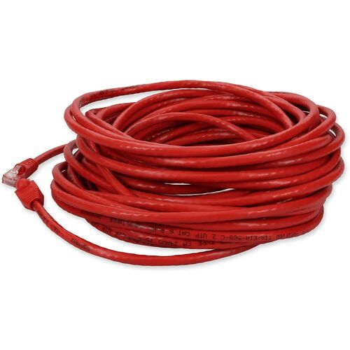 This is a 25ft RJ-45 (male) to RJ-45 (male) red crossover unshielded twisted pair PVC copper patch cable. The Cat6 cable is a standardized twisted pair cable for Ethernet or other physical network layers. Cat6 standards specify performance of up to 250MHz. This PVC jacketed cable is best suited for LANs or SANs, and is recommended for connection between fiber patch panels, hubs, switches, media converters and routers. Unshielded twisted pair patch cables are perfect for data centers, LANs and other short range network connections. Our patch cables are 100% compliant for all of your networking needs. Our products are guaranteed by federal law to not affect or void OEM warranties.