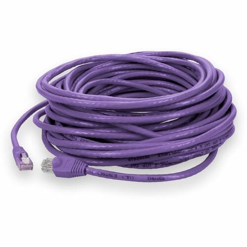 This is a 30ft RJ-45 (male) to RJ-45 (male) purple Snagless crossover unshielded twisted pair PVC copper patch cable. The Cat6 cable is a standardized twisted pair cable for Ethernet or other physical network layers. Cat6 standards specify performance of up to 250MHz. This PVC jacketed cable is best suited for LANs or SANs, and is recommended for connection between fiber patch panels, hubs, switches, media converters and routers. Unshielded twisted pair patch cables are perfect for data centers, LANs and other short range network connections. Our patch cables are 100% compliant for all of your networking needs. Our products are guaranteed by federal law to not affect or void OEM warranties.