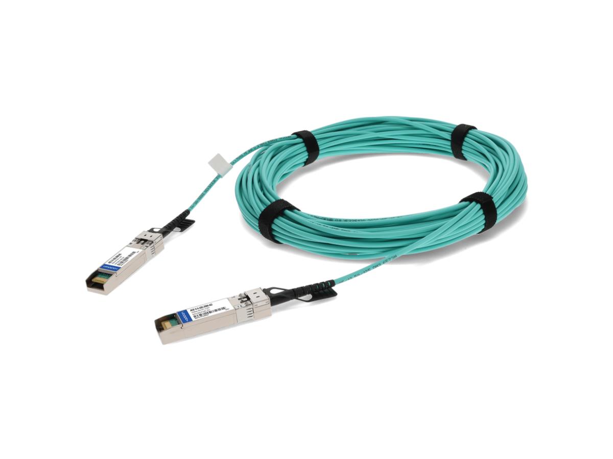 Il s'agit d'un câble à connexion directe SFP+ vers SFP+ 10GBase-AOC compatible Arista Networks AOC-SS-10G-20M, fonctionnant sur MMF actif avec une portée maximale de 20 m (65,62 pi). Programmé, doté d'une sérialisation unique, il a été testé pour garantir sa conformité et son fonctionnement, tant au niveau du trafic de données que des applications. Nos câbles à connexion directe sont conformes aux normes MSA (Multi-Source Agreement). Tous nos câbles Twinax et AOC sont conformes au Trade Agreements Act (TAA). Nous garantissons la qualité de nos produits et offrons fièrement une garantie à vie limitée.