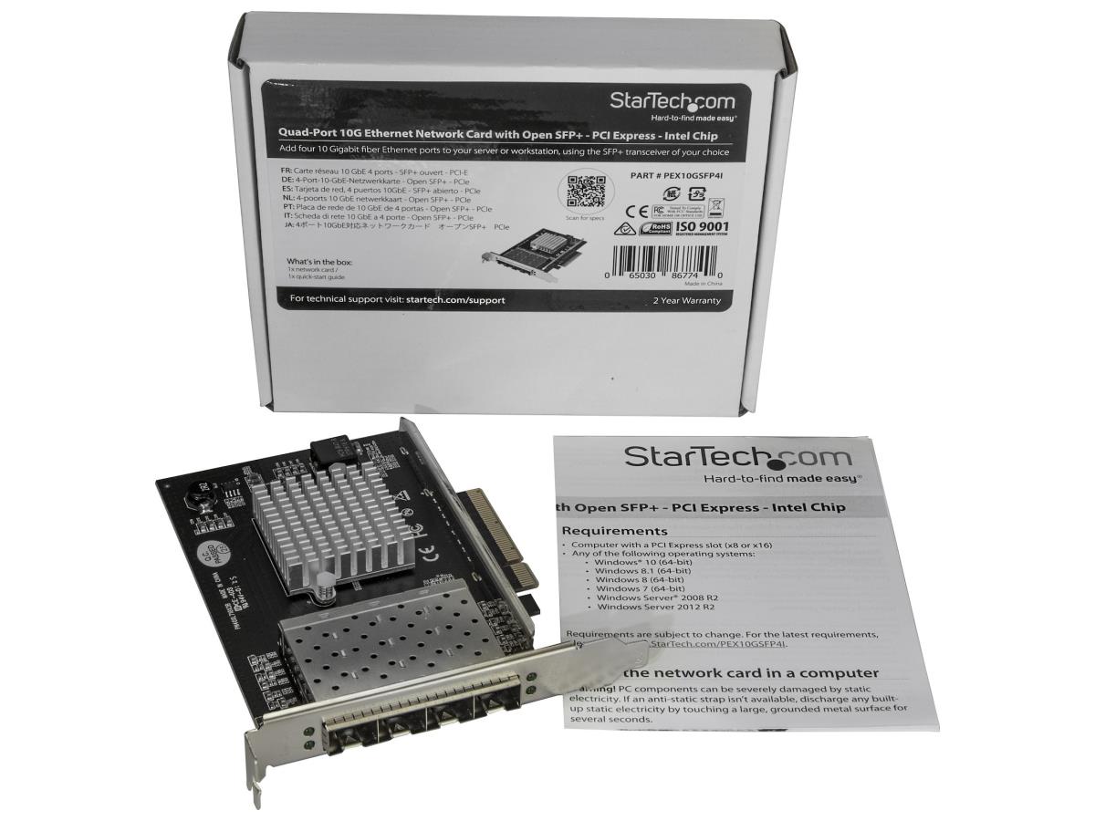 | Product Description: | StarTech.com Quad Port 10G SFP+ Network Card, Intel XL710 Open SFP+ Converged Adapter, PCIe 10 Gigabit Ethernet Server NIC, 10GbE Fiber Optic LAN Card Dell PowerEdge HPE ProLiant, NIC Card - 10Gb SFP+ NIC Card (PEX10GSFP4I) - network adapter - PCIe x8 - 10 Gigabit SFP+ x 4 |