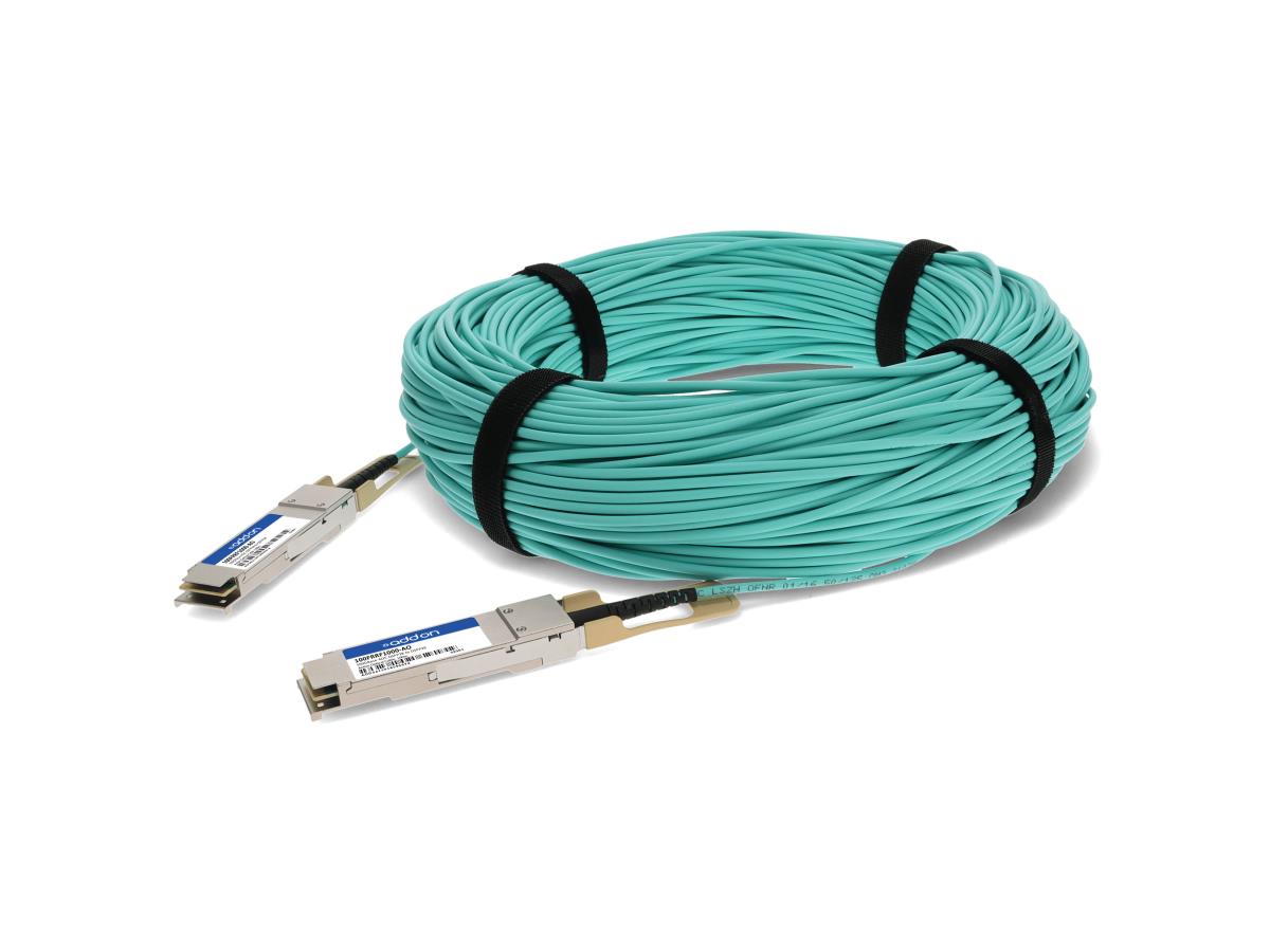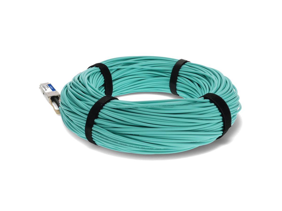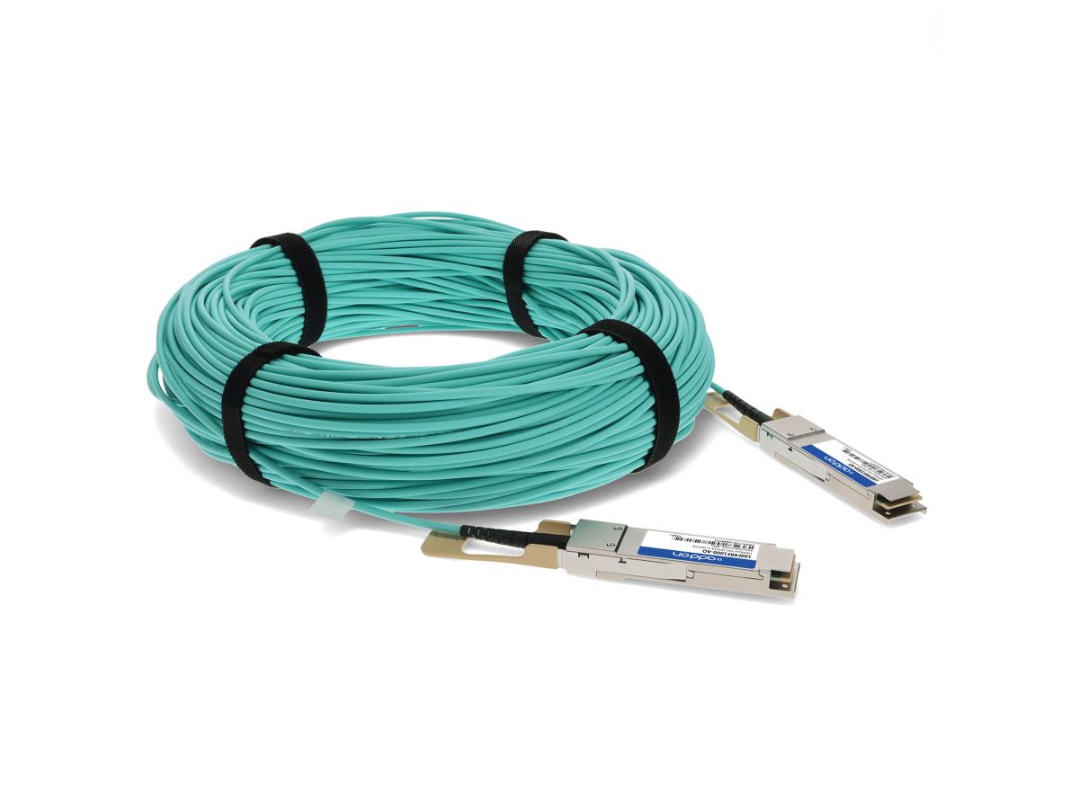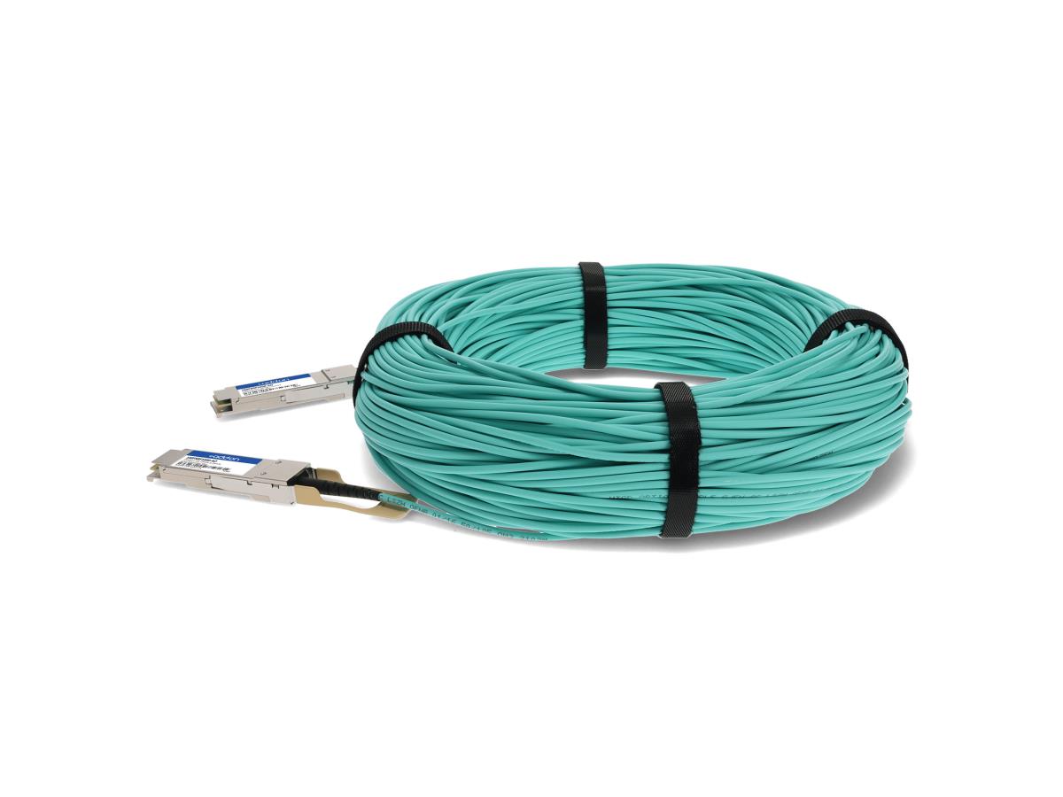This is an Intel 100FRRF1000 compatible 100GBase-AOC QSFP28 Omni-Path Architecture active optical cable that operates over multi-mode fiber with a maximum reach of 100.0m (328.1ft). At a wavelength of 850nm, it has been programmed, uniquely serialized, and data-traffic and application tested to ensure it is 100% compliant and functional. This active optical cable is TAA (Trade Agreements Act) compliant, and is built to comply with MSA (Multi-Source Agreement) standards. We stand behind the quality of our products and proudly offer a limited lifetime warranty.