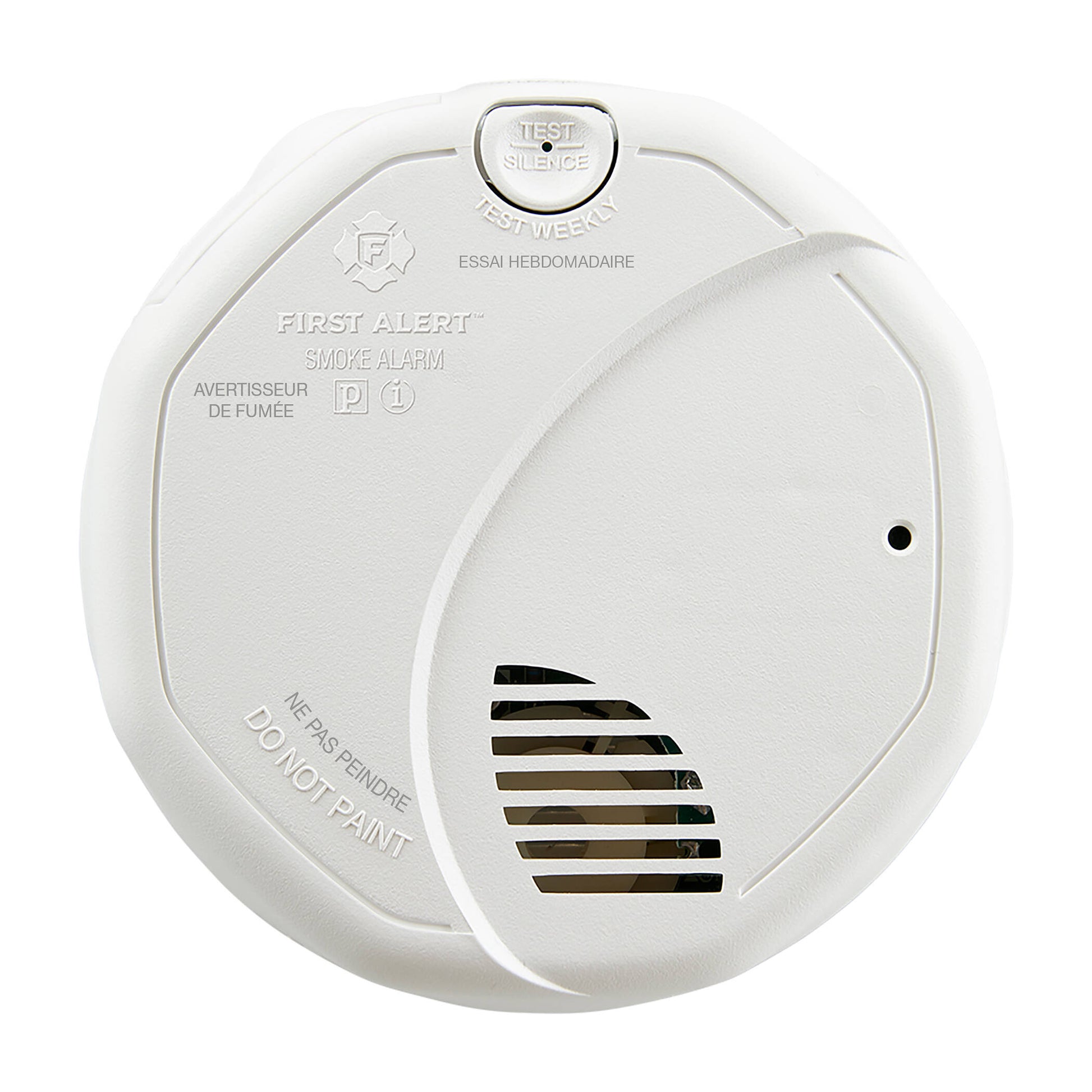 The First Alert 1039840 Smoke Alarm features a built-in 10-year battery and uses dual photoelectric and ionization smoke sensing for early warning of flaming and smouldering fires. A single button both silences and tests the detector for easy operation.