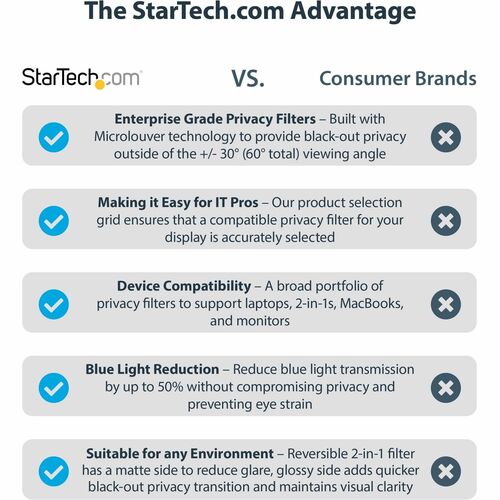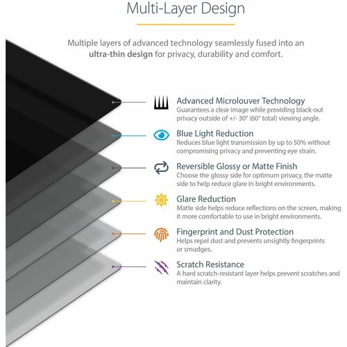 StarTech.com 17-inch 5:4 Computer Monitor Privacy Filter, Anti-Glare Privacy Screen w/51% Blue Light Reduction, +/- 30 deg. View Angle - 17" 5:4 Computer Monitor Privacy Filter, Anti-Glare Privacy Screen w/51% Blue Light Reduction - Blacks out view outside +/-30 deg - Reduce eye strain blocking up to 51% of blue light - Reversible protector shield w/ glossy or anti-glare matte side