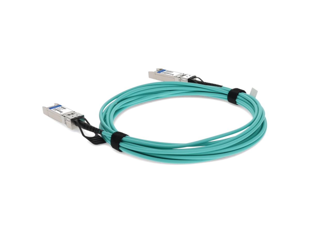 This is an Avago AFBR-2CAR10Z compatible 10GBase-AOC SFP+ to SFP+ direct attach cable that operates over active fiber with a maximum reach of 10.0m (32.8ft). It has been programmed, uniquely serialized, and data-traffic and application tested to ensure it is 100% compliant and functional. Our direct attach cables are built to comply with MSA (Multi-Source Agreement) standards. The actual part shipped may have a different part number, but will be functionally identical and 100% compatible. All of our twinax and AOC cables are Trade Agreements Act (TAA) compliant. We stand behind the quality of our products and proudly offer a limited lifetime warranty.