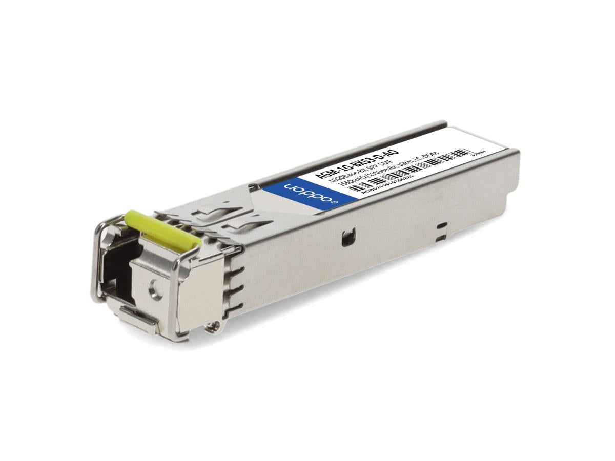 This Netgear compatible SFP transceiver provides 1000Base-BX throughput up to 10km over single-mode fiber (SMF) at a bidirectional wavelength of 1550nmTx/1310nmRx using a LC connector. It is guaranteed to be 100% compatible with the equivalent Netgear transceiver. This easy to install, hot swappable transceiver has been programmed, uniquely serialized and data-traffic and application tested to ensure that it will initialize and perform identically. Digital optical monitoring (DOM) support is also present to allow access to real-time operating parameters. All of our transceivers are Trade Agreements Act (TAA) compliant. We stand behind the quality of our products and proudly offer a limited lifetime warranty.
