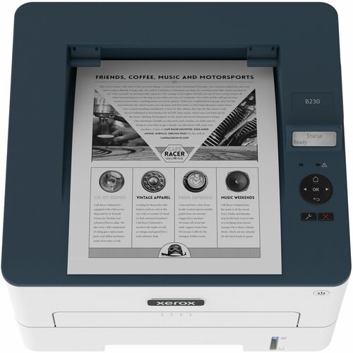 Xerox B230 Wired/Wireless Laser Printer - Monochrome - 34 ppm Mono - 600 x 600 dpi Print - Automatic Duplex Print - 251 Sheets Input - Ethernet - Wireless LAN - Wi-Fi Direct, Apple AirPrint, Mopria Print Service, Chromebook - 30000 Pages Duty Cycle - Plain Paper Print - Fast Ethernet - USBEnjoy fast printing in a single pass which helps you do more with Automatic Duplex Printing Cut your paper cost by 50% with Automatic Duplex Printing that allows you to print on both sides Experience an astounding monthly turnover with 30000