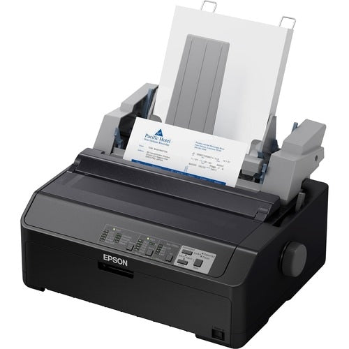 The Epson LQ-590II Series offers the durability and ease of use for critical daily print requirements. These reliable 24-pin impact printers boast a long life cycle, a 3-year limited warranty and speeds up to 584 cps. Their up-to-5-million-character ribbon cartridge reduces user interventions as well as cost per page. Engineered for seamless integration into virtually any system, they include Epson ESC/P2® and IBM® PPDS printer languages. Ideal for harsh environments, these workhorses race through cut-sheet, continuous or multipart forms up to 7 pages thick, and feature an intuitive control panel for easy setup and operation.