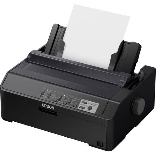 The Epson LQ-590II N Network Impact Printer offers the durability and ease of use for critical daily print requirements. These reliable 24-pin impact printers boast a long life cycle, a 3-year limited warranty and speeds up to 584 cps. Their up-to-5-million-character ribbon cartridge reduces user interventions as well as cost per page. Engineered for seamless integration into virtually any system, they include Epson ESC/P2® and IBM® PPDS printer languages. Ideal for harsh environments, these workhorses race through cut-sheet, continuous or multipart forms up to 7 pages thick, and feature an intuitive control panel for easy setup and operation.
