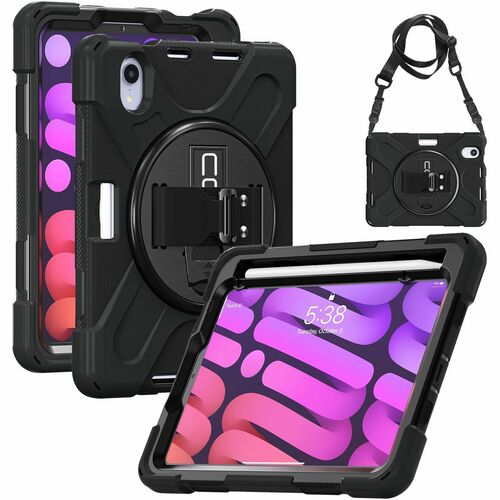 CODi Rugged Carrying Case Apple iPad mini (6th Generation) Tablet, Apple Pencil, Stylus - Black - Drop Resistant, Shock Resistant, Bump Resistant, Shock Absorbing - Polycarbonate, Silicone Body - Shoulder Strap, Hand Strap - 8.25" (209.55 mm) Height x 6.50" (165.10 mm) Width x 0.75" (19.05 mm) Depth