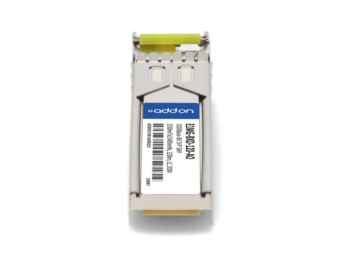 This Brocade compatible SFP transceiver provides 1000Base-BX throughput up to 120km over single-mode fiber (SMF) at a bidirectional wavelength of 1550nmTx/1490nmRx using an LC connector. This bidirectional unit must be used with another transceiver or network appliance of complimenting wavelengths. It is guaranteed to be 100% compatible with the equivalent Brocade transceiver.