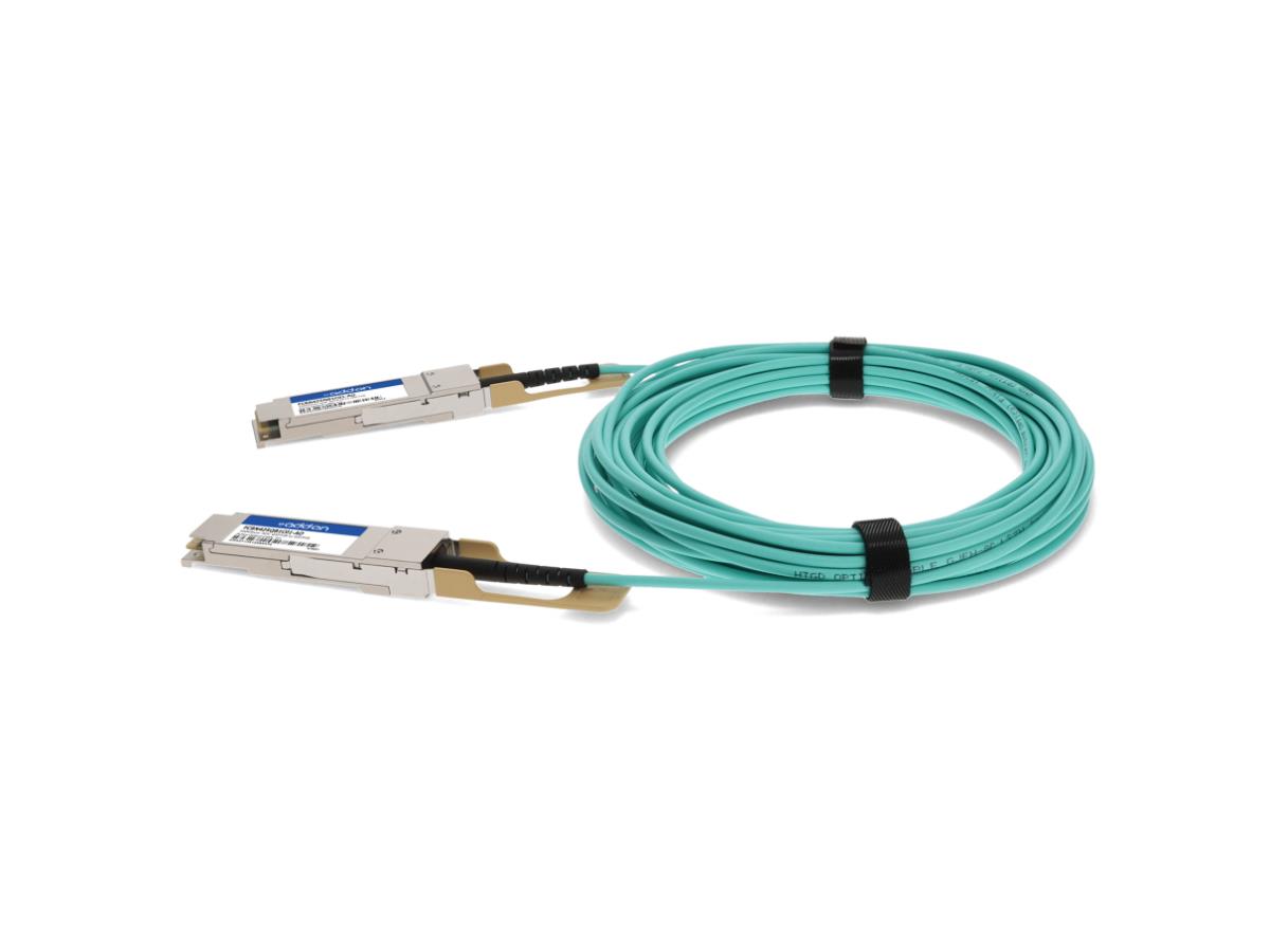 This is a Finisar FCBN425QB1C01 compatible 100GBase-AOC QSFP28 to QSFP28 direct attach cable that operates over active fiber with a maximum reach of 1.0m (3.3ft). It has been programmed, uniquely serialized, and data-traffic and application tested to ensure it is 100% compliant and functional. Our direct attach cables are built to comply with MSA (Multi-Source Agreement) standards. The actual part shipped may have a different part number, but will be functionally identical and 100% compatible. All of our twinax and AOC cables are Trade Agreements Act (TAA) compliant. We stand behind the quality of our products and proudly offer a limited lifetime warranty.