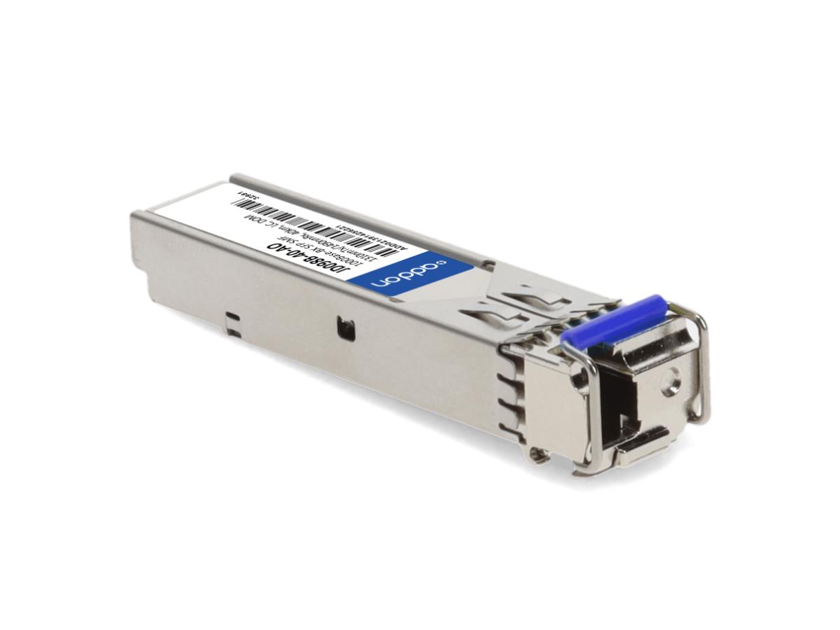 This HP JD098B compatible SFP transceiver provides 1000Base-BX throughput up to 40km over single-mode fiber (SMF) at a bidirectional wavelength of 1310nmTx and 1490nmRx using a LC connector. It is guaranteed to be 100% compatible with the equivalent HP transceiver. This easy to install, hot swappable transceiver has been programmed, uniquely serialized and data-traffic and application tested to ensure that it will initialize and perform identically. Digital optical monitoring (DOM) support is also present to allow access to real-time operating parameters. All of our transceivers are Trade Agreements Act (TAA) compliant. We stand behind the quality of our products and proudly offer a limited lifetime warranty.