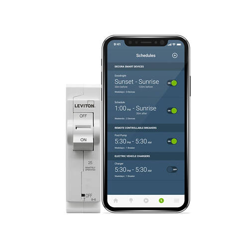 Please note: A Leviton Whole Home Energy Monitor must be installed on your electrical panel in order to access smart features and control.